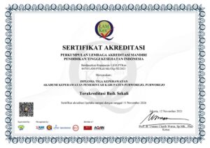 Lembaga Akreditasi Mandiri Perguruan Tinggi Kesehatan (LAM-PTKes) memberikan status Akreditasi Program Studi DIII Keperawatan dengan predikat "BAIK SEKALI" SK Nomor 0474/LAM-PTKes/AKr/Dip/Khs/XI/2021